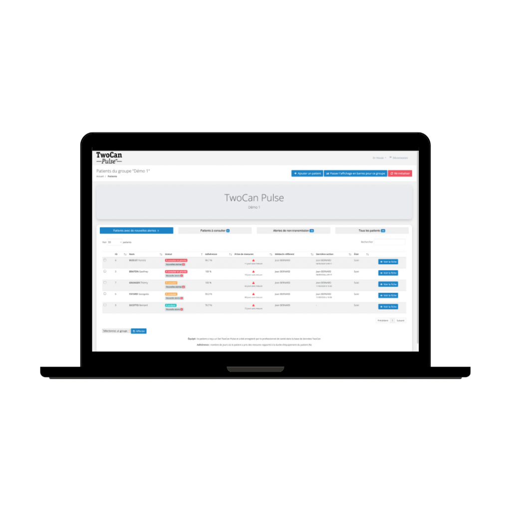 TwoCan Pulse™ is a telemonitoring solution aimed at preventing potential cardiac decompensation for patients suffering from chronic heart failure. The solution is covered by social security in France.
